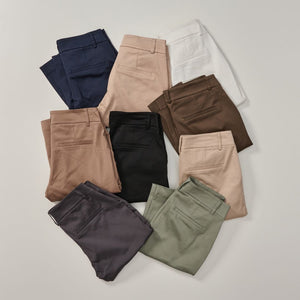 Vi mener at et par chinos er en nødvendig del av enhver kvinnes garderobe, og grunnen er enkel. Vi har viet år til å forfine chinos slik at de passer perfekt for alle kvinner. Våre chinos har gjennomgått grundige prosesser og har ikke blitt satt sammen tilfeldig. Alt fra riktig følelse i stoffet til å finne den nøyaktige oppskriften på en god passform har vært i fokus, noe som gjør detaljrikdommen på våre chinos førsteklasses.
