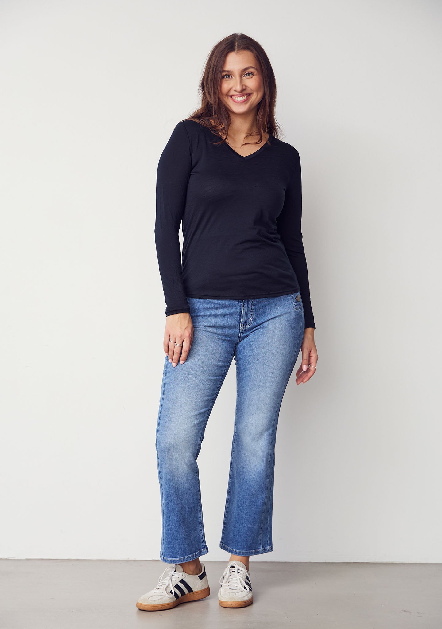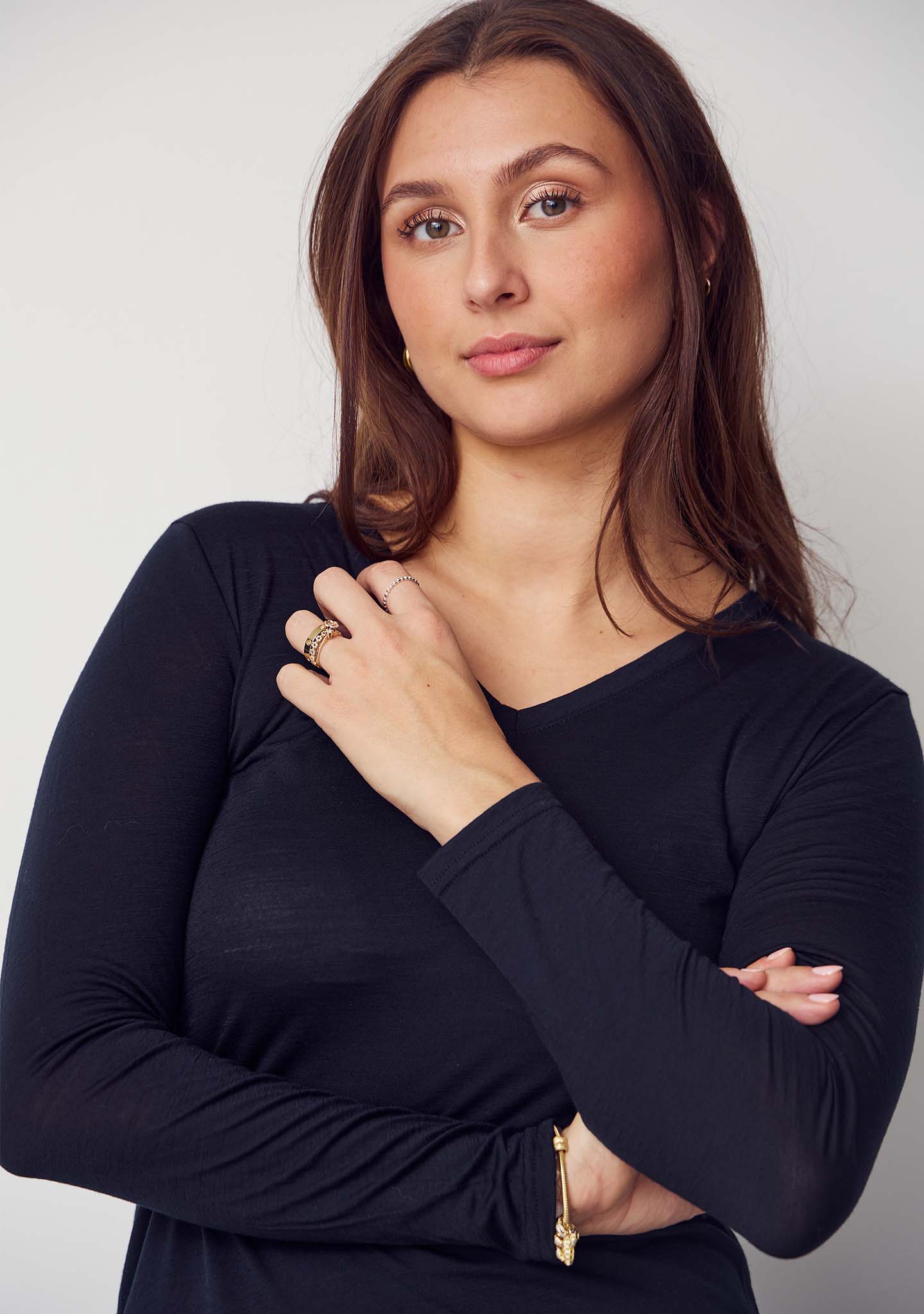 • Langermet t-skjorte med v-hals