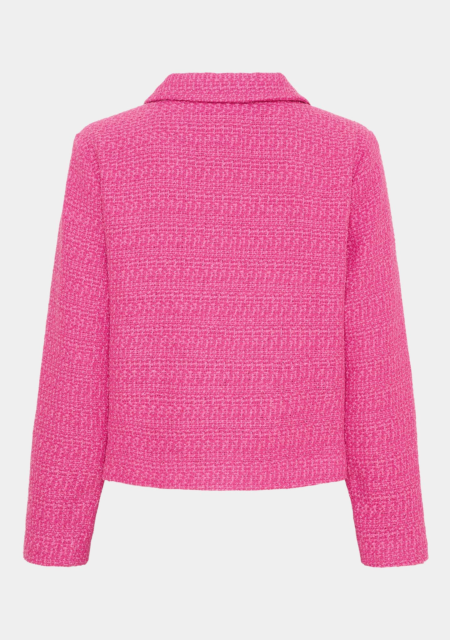 Flott blazer i bouclé tekstur. Chia-blazeren er designet med et klassisk utseende som inkluderer tekstur på overflaten og en glitrende tråd vevd inn i vakre farger. Den har en klassisk krage, lukkes med fine dekorative knapper og har to passpolerte lommer foran. Chia-blazeren har en semi-tettsittende passform og passer perfekt til både hverdagsbruk og festlige anledninger. Du kan style den med et par jeans og en enkel t-skjorte for en avslappet hverdagslook, eller bruke den over en kjole eller en fin bluse for en festlig begivenhet. Uansett vil blazeren tilføre stilen din et snev av eleganse.