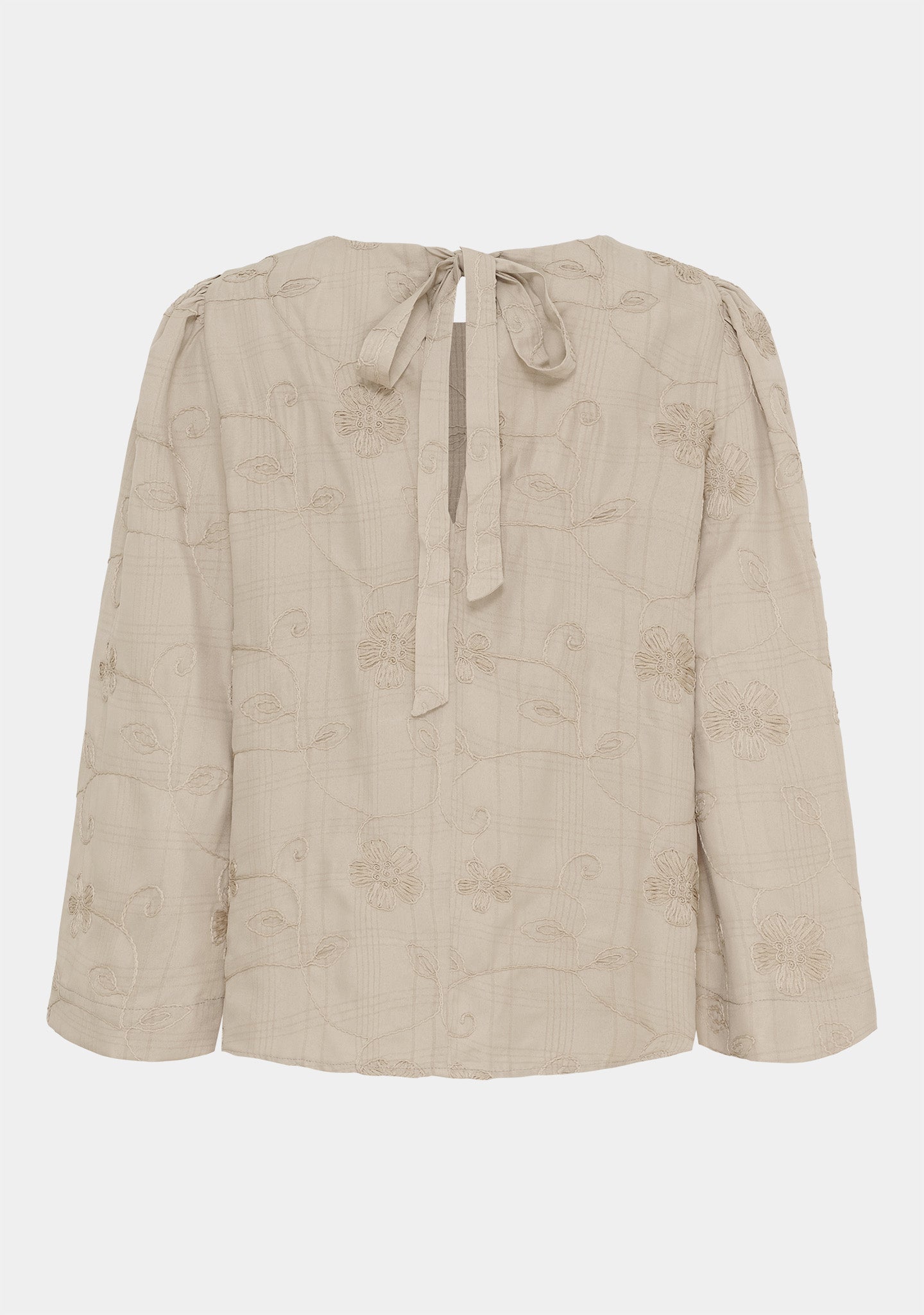 Juna Blouse er det perfekte valget for de som ønsker en feminin og sofistikert bluse med unike detaljer. De broderte mønstrene tilfører dybde og eleganse, mens båndet i nakken gir et stilig preg. De lange, lett voluminøse ermene skaper en vakker silhuett, og det lette materialet sikrer en luftig og komfortabel passform hele dagen.