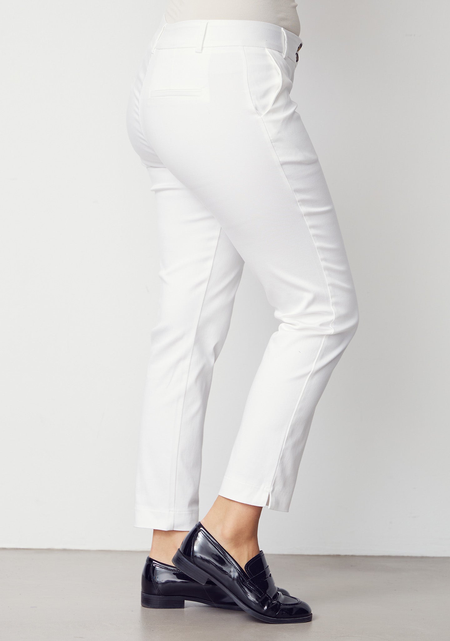 Isay Chino Pant er vår bestselgende bukse for kvinner. Utvalget vårt av klassiske chinos byr på et bredt spekter av fantastiske farger, som hele tiden oppdateres i takt med sesongen og de siste trendene. Buksen er laget av elastisk og slitesterkt materiale i myk bomull, som gir en ekstraordinær komfort. Isay Chino Pant er laget med fokus på å sikre den perfekte passformen for deg. Den har en glatt overflate, middels midje, 9/10 lengde med liten splitt, to passpolerte baklommer og beltehemper.