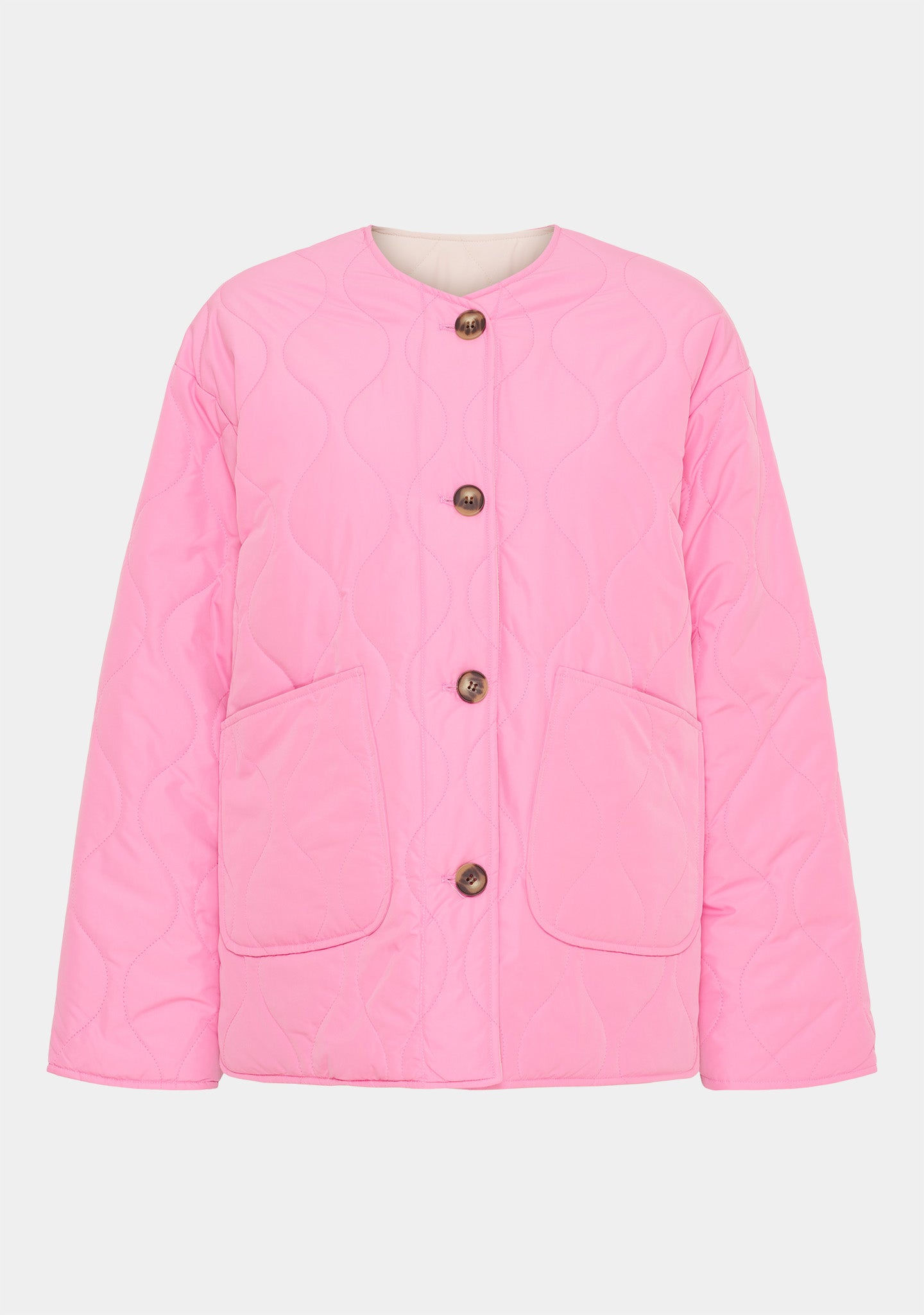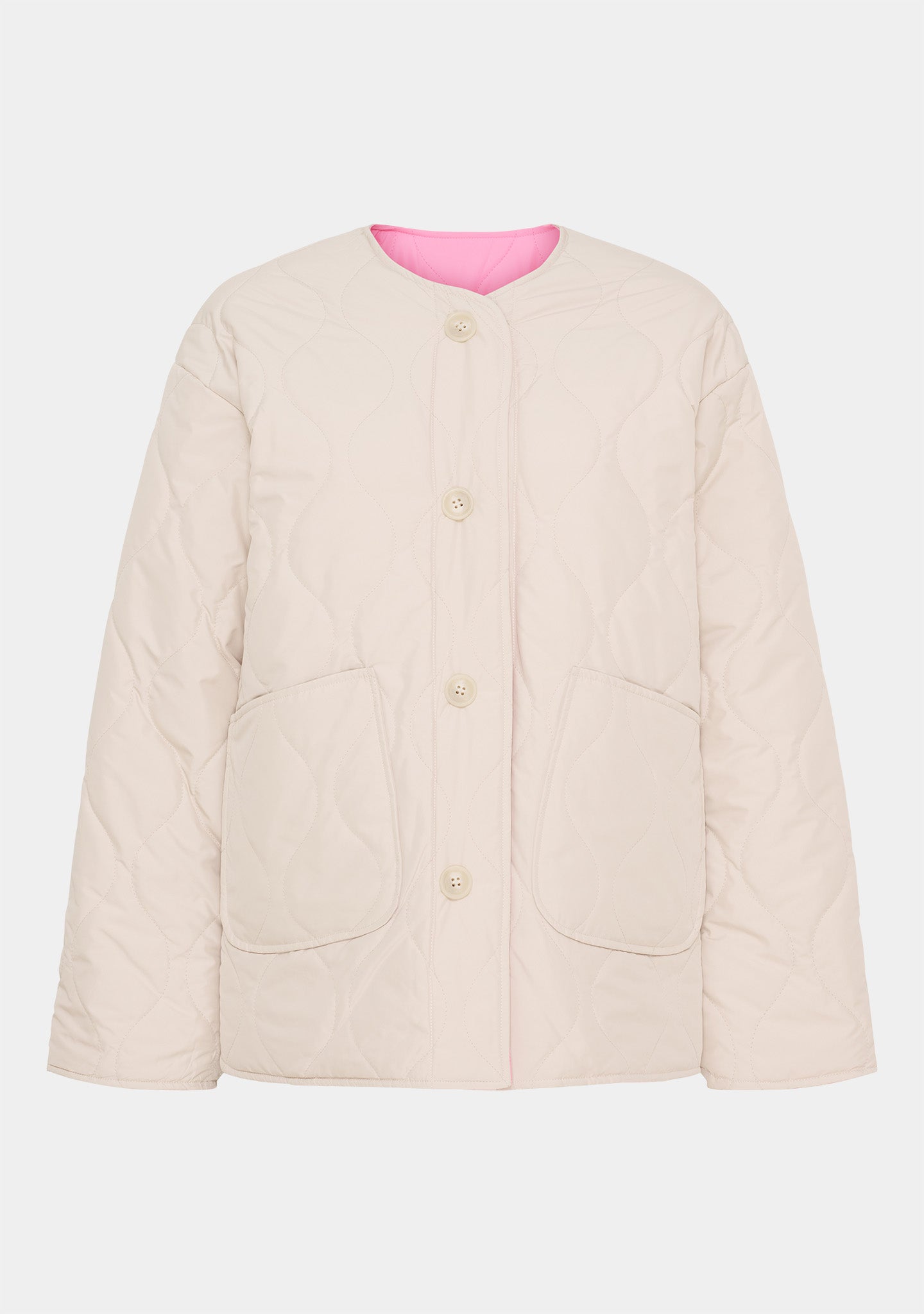 Diddi Reversible Jacket er en praktisk og stilig jakke som gir deg to utseender i ett. Jakken har en lett avslappet passform, quiltet struktur og store påsydde lommer foran. Den runde halsutskjæringen og knappelukningen gir et enkelt og moderne utseende, mens den vendbare funksjonen gjør det enkelt å endre utseendet etter behov. Laget av 100% resirkulert polyester, som føles lett og holdbart - et bevisst valg med fokus på komfort og ansvarlighet.