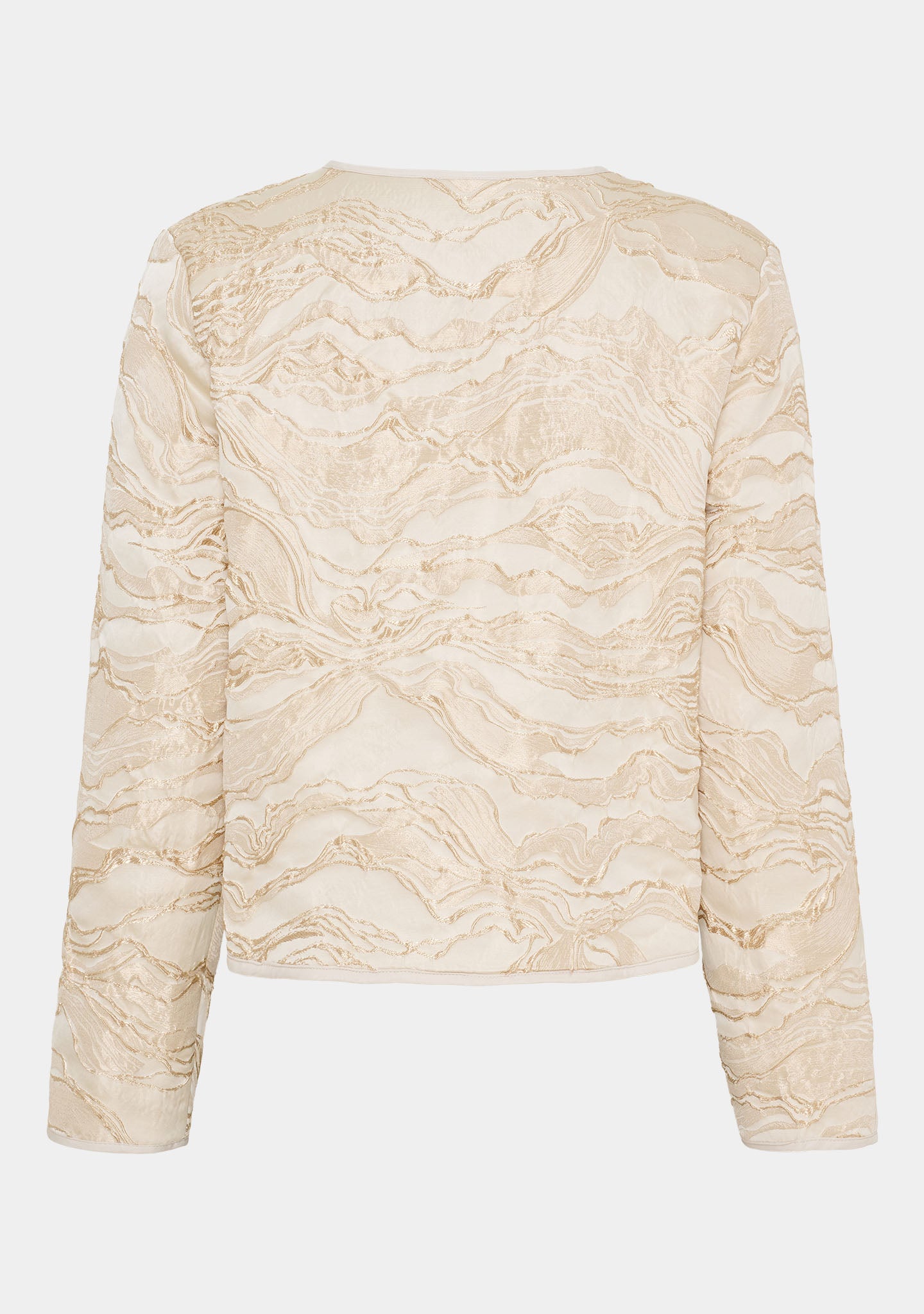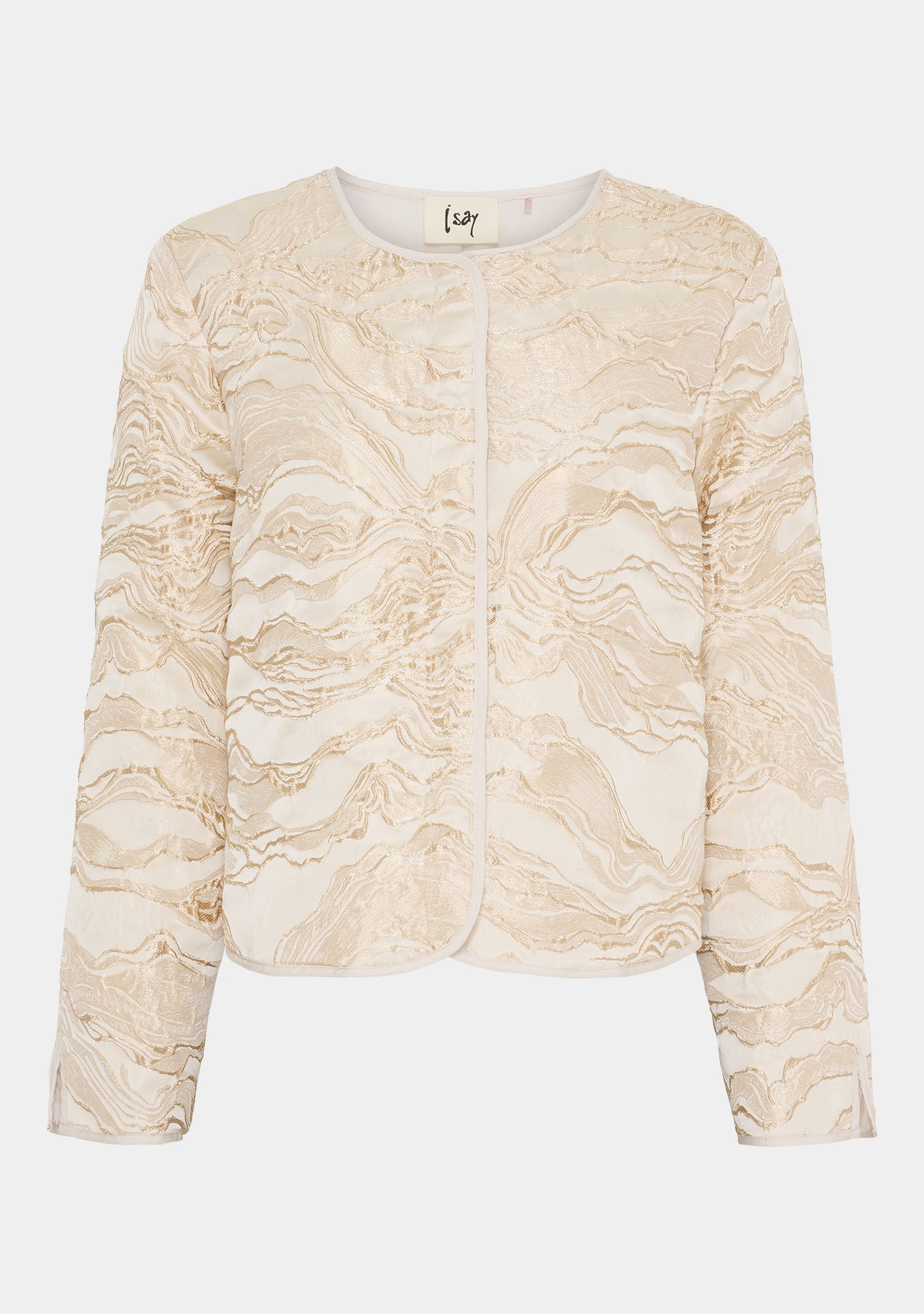 Johanna New Jacket er en lett og alsidig jakke med et feminint og sofistikert utseende. Den quiltede strukturen skaper en vakker overflate, mens den runde halsutringningen gir en enkel og tidløs design.