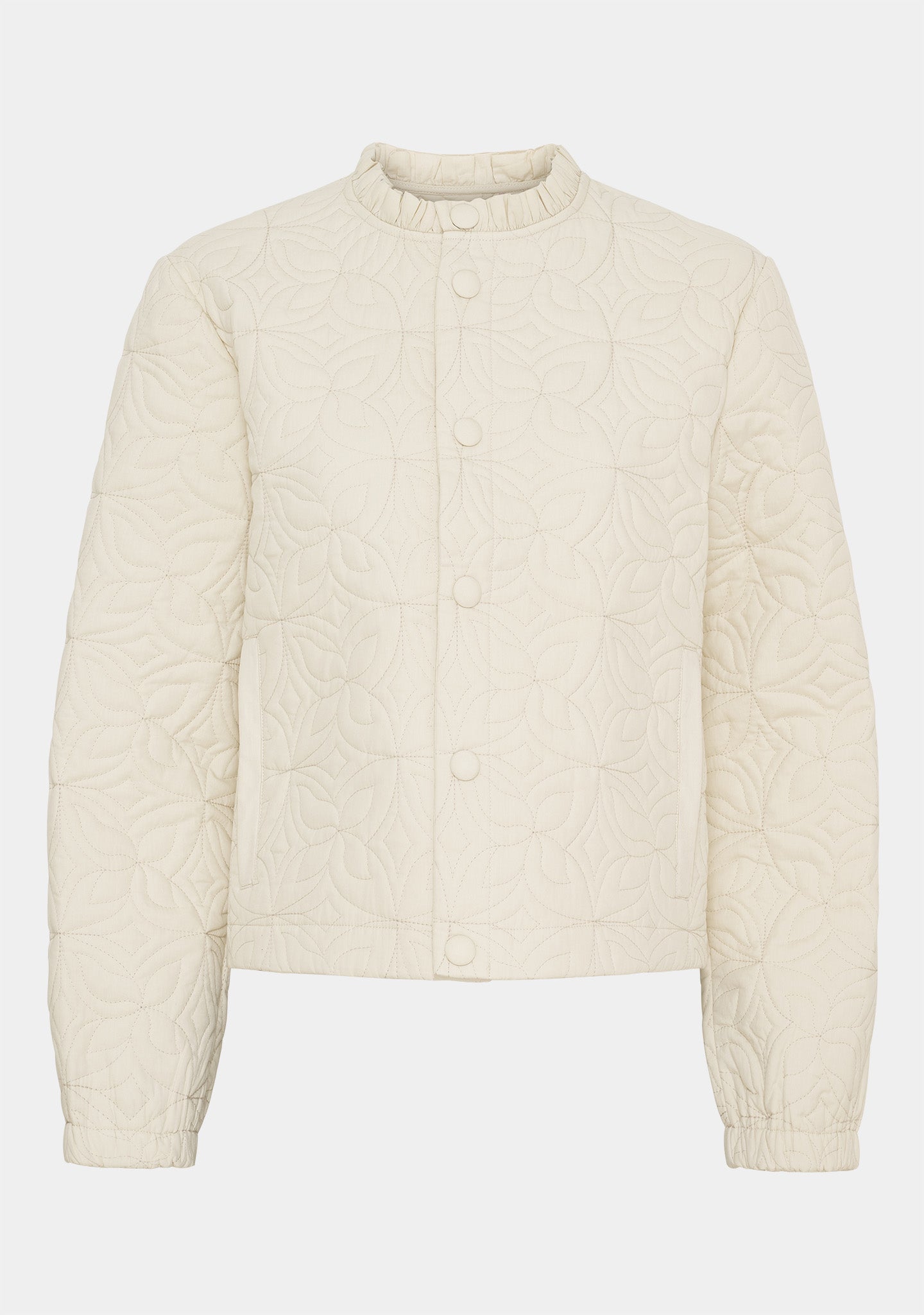 Lana Jacket er en stilig quiltet jakke med et unikt mønster som gir jakken karakter. Designet med rund hals og en enkel knappelukking foran får jakken et feminint og sofistikert uttrykk. De diskrete sidelommene legger til funksjonalitet, mens det quiltede mønsteret gir behagelig volum og et eksklusivt utseende. Jakken er laget av 100% bomull, noe som gjør den myk og behagelig å ha på.
