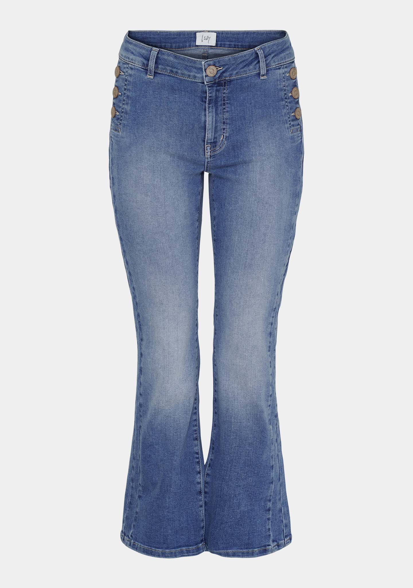 Como Button Jeans er det perfekte valget for deg som elsker elegante og unike jeans. Disse jeansene har en vakker design med fine knapper på hver side av hoften, som gir et feminint preg. De har også en trendy flare-effekt ved anklene, som skaper en flatterende silhuett. Como Button Jeans er designet uten frontlommer, men med en ekstra søm på yttersiden av hvert bukseben, noe som tilfører et spennende element. De har en middels høy midje og er laget av stretchstoff, noe som gir deg en fantastisk passform og komfort. Como Button Jeans er jeans du vil elske å ha på deg!