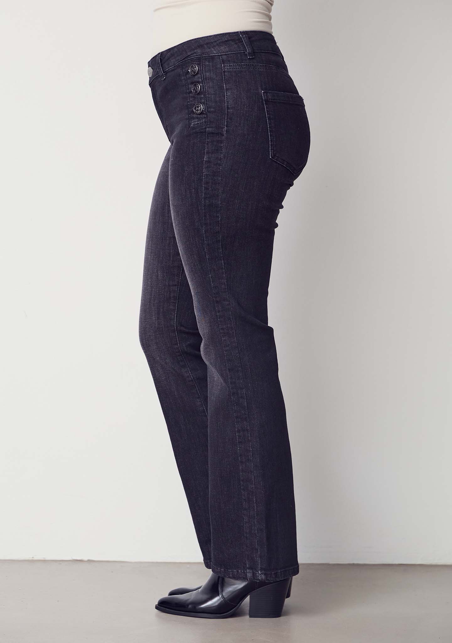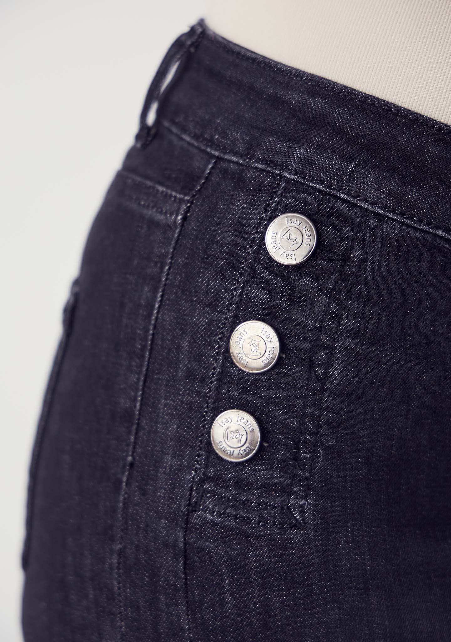 Her er det nyeste tilskuddet til Como-kolleksjonen: Como Flare Button Jeans. Disse jeansene er det perfekte valget for deg som elsker et par unike jeans med en elegant design. Como Flare Button Jeans har store, vakre knapper på hver side av hoften i stedet for lommer, noe som gir dem et karakteristisk og feminint preg. De har en moderne flare passform, som sitter tett på lårene og utvider seg fra knærne og ned til ankelen. Como Flare Button Jeans er laget av en herlig bomullsblanding med stretch, som sikrer deg fantastisk komfort hele dagen.