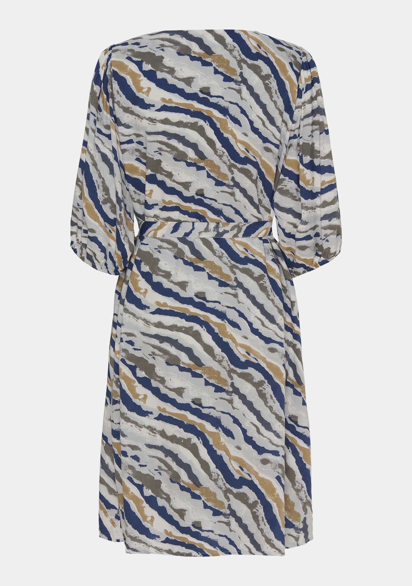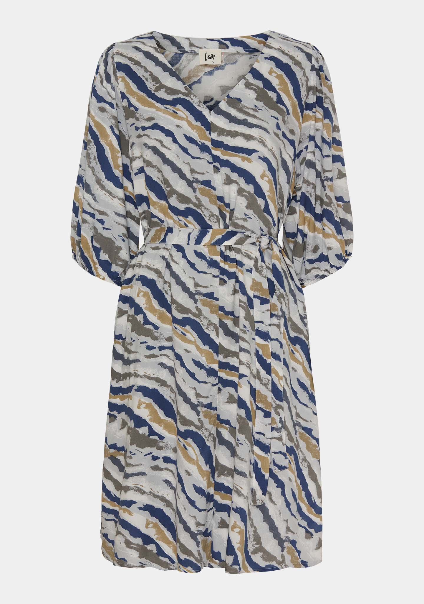 Dunja-kjolen er en feminin midi-kjole med et nydelig trykk. Kjolen har en V-halsutringning, et midjebånd som fremhever figuren din, et fargerikt mønster og lange ermer med elastiske mansjetter. Den gir en behagelig og glatt følelse mot huden på grunn av materialet, som er laget av 100% LENZING™ ECOVERO™ viskose. Stoffet er lett og luftig, noe som gjør det perfekt for varmt sommervær. Denne kvaliteten sikrer at kjolen føles lett og komfortabel samtidig som den opprettholder et elegant og feminint utseende. Du kan style Dunja-kjolen med en klassisk blazer og noen støvler for et feminint uttrykk.