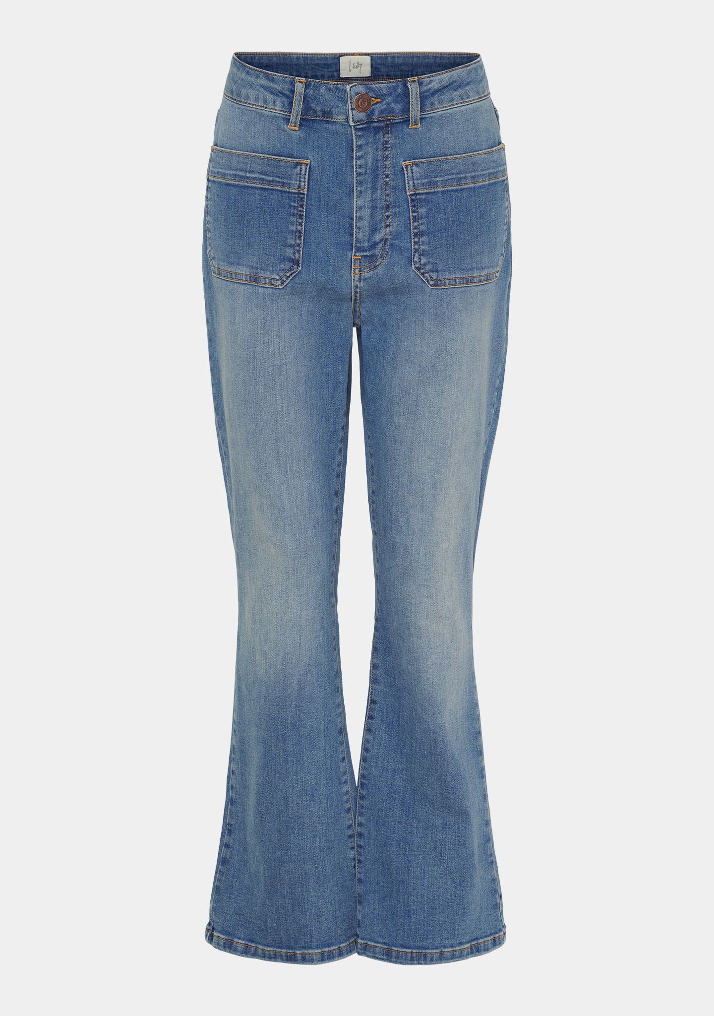 Bologna Kickflare Jeans er for deg som vil ha en jeans med form – uten å bli for mye. Den sitter tett over hofter og lår og har en lett svaie fra kneet, noe som skaper balanse i silhuetten.