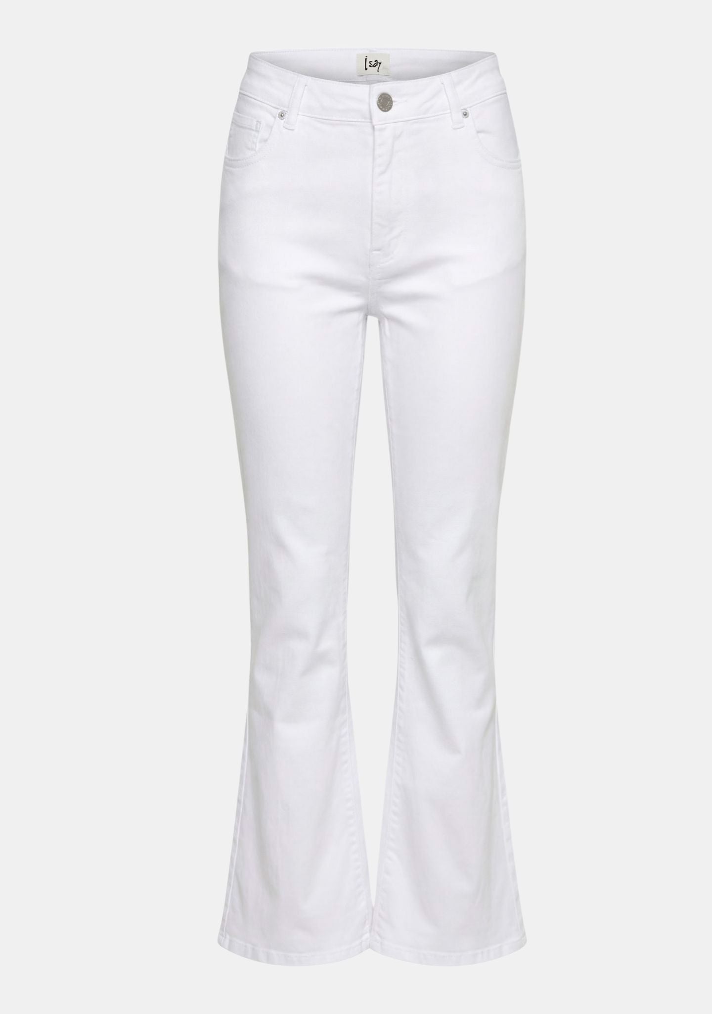 Dette er høyt liv og lett utsvingede bukser med kort lengde - for deg som ønsker en tydelig silhuett og en moderne passform som skaper form.
