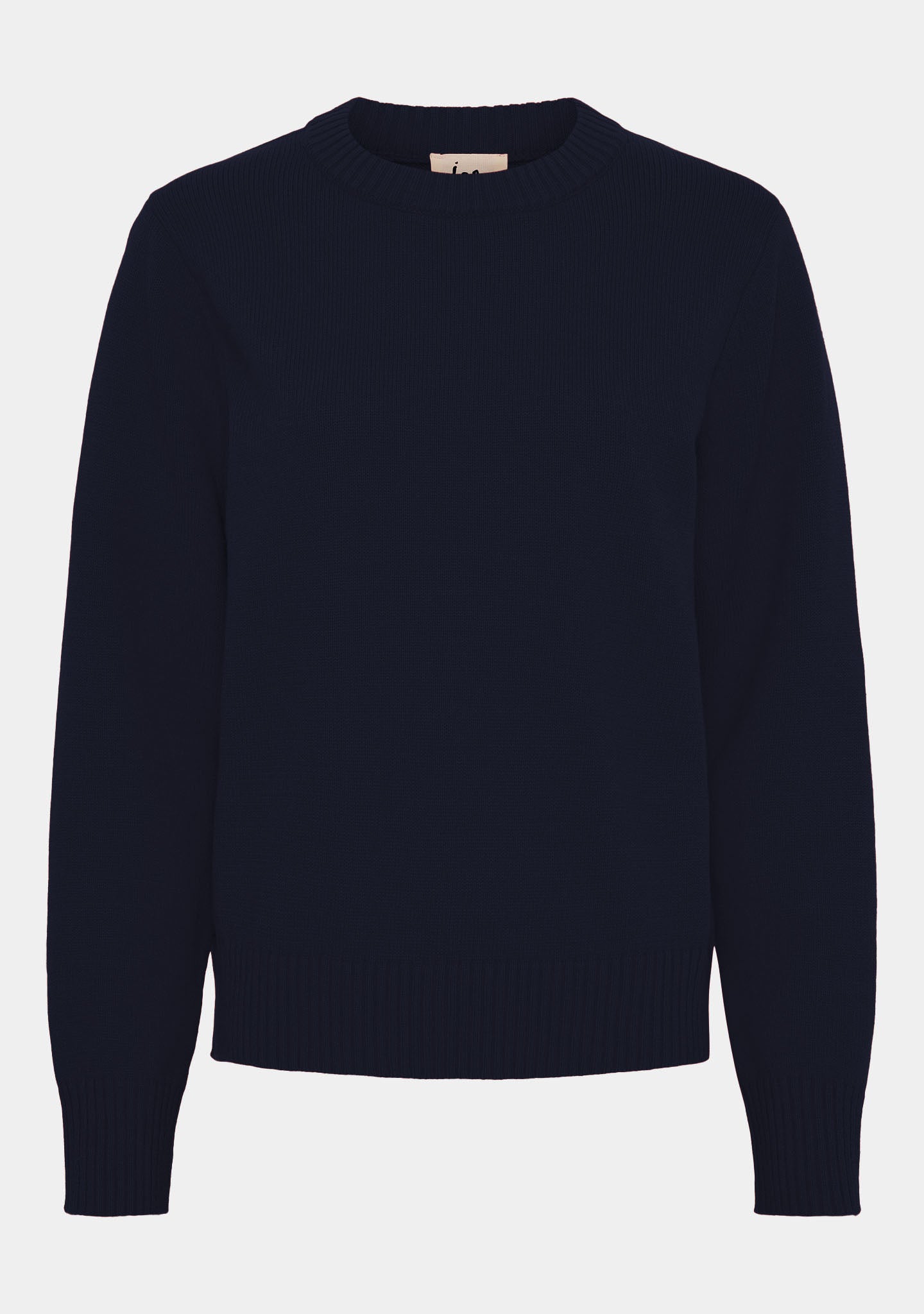 Gwen Basic Pullover er en tidløs strikkegenser med en enkel og stilig design. Den normale passformen og runde halsen gjør den lett å style både alene og sammen med skjorter eller jakker. Strikken har en finstrikket kant ved halsen, ermene og nederkanten, som gir et eksklusivt og velbalansert utseende. Laget i en myk bomullsblanding med akryl, som kombinerer komfort, pusteevne og holdbarhet - perfekt for både hverdagsbruk og lag-på-lag styling.