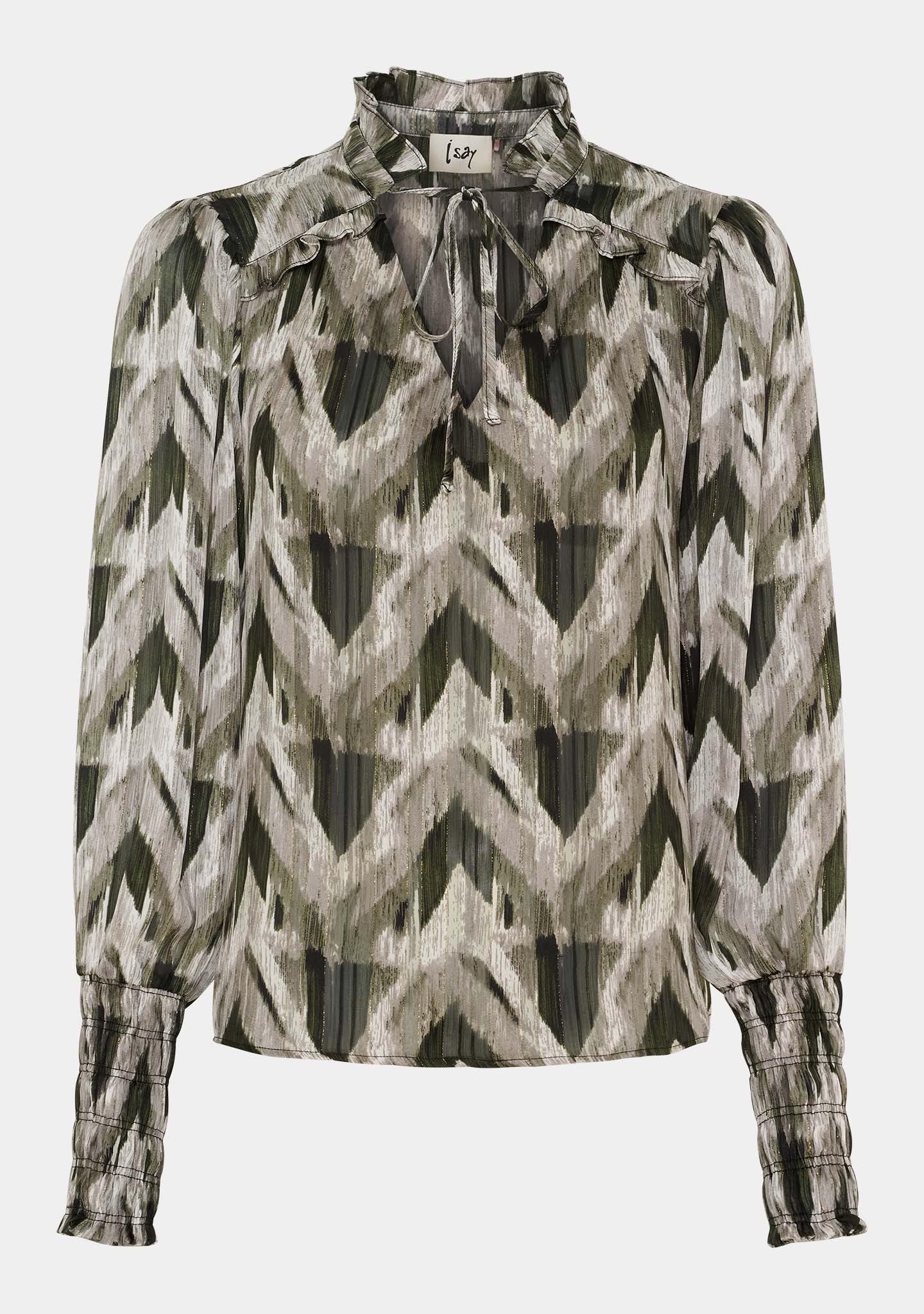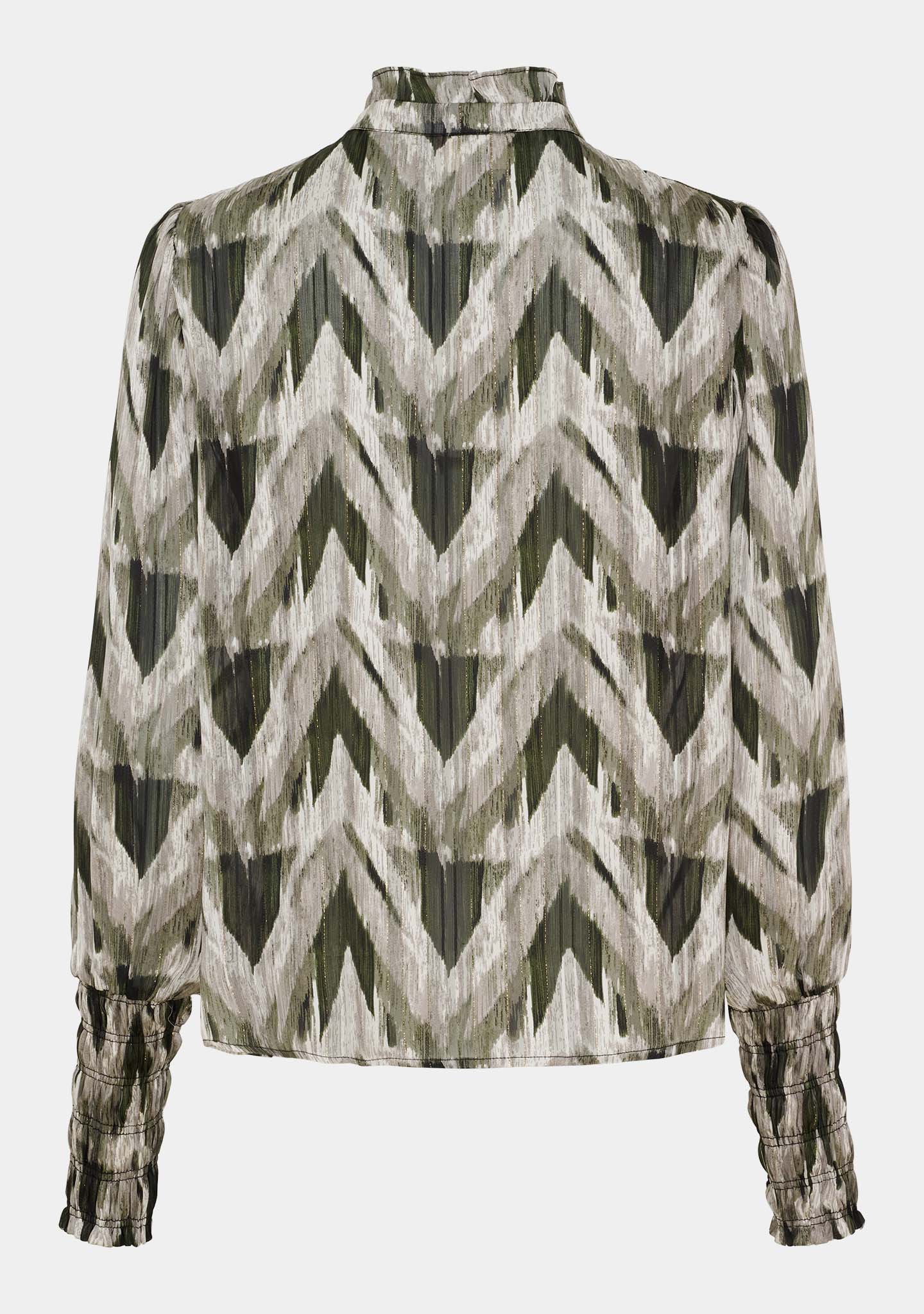 Kuna Blouse er en stilig og lett bluse med et moderne utseende. Den lille stående kragen med bånd gir et diskret, sofistikert preg, mens de lange ermene med brede mansjetter skaper en vakker silhuett.