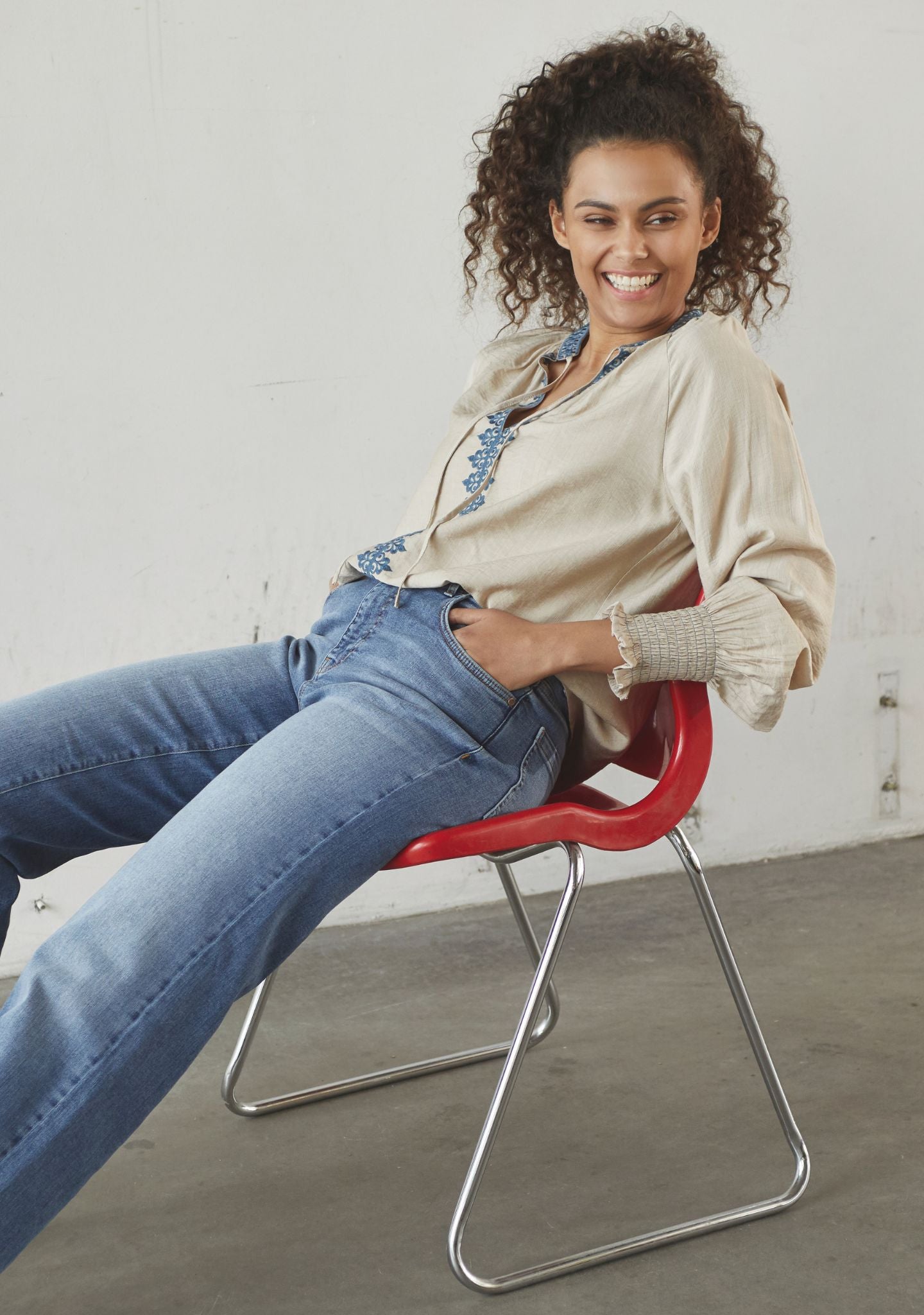 Style Lykke Deco Bluse med jeans for en avslappet, men elegant hverdagslook, eller bruk den med en skjørt og støvler for en mer pyntet stil.