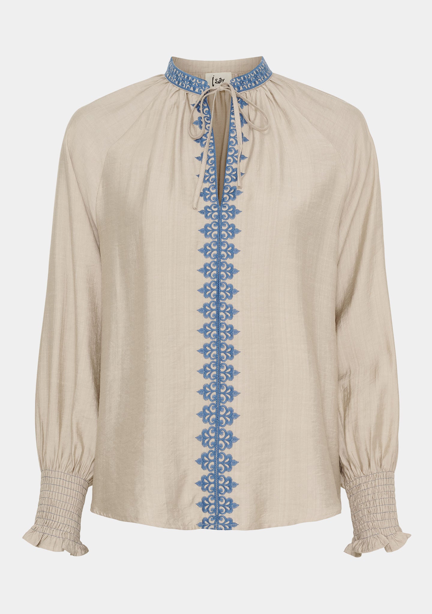 Lykke Deco Blouse - Sand w/Blue