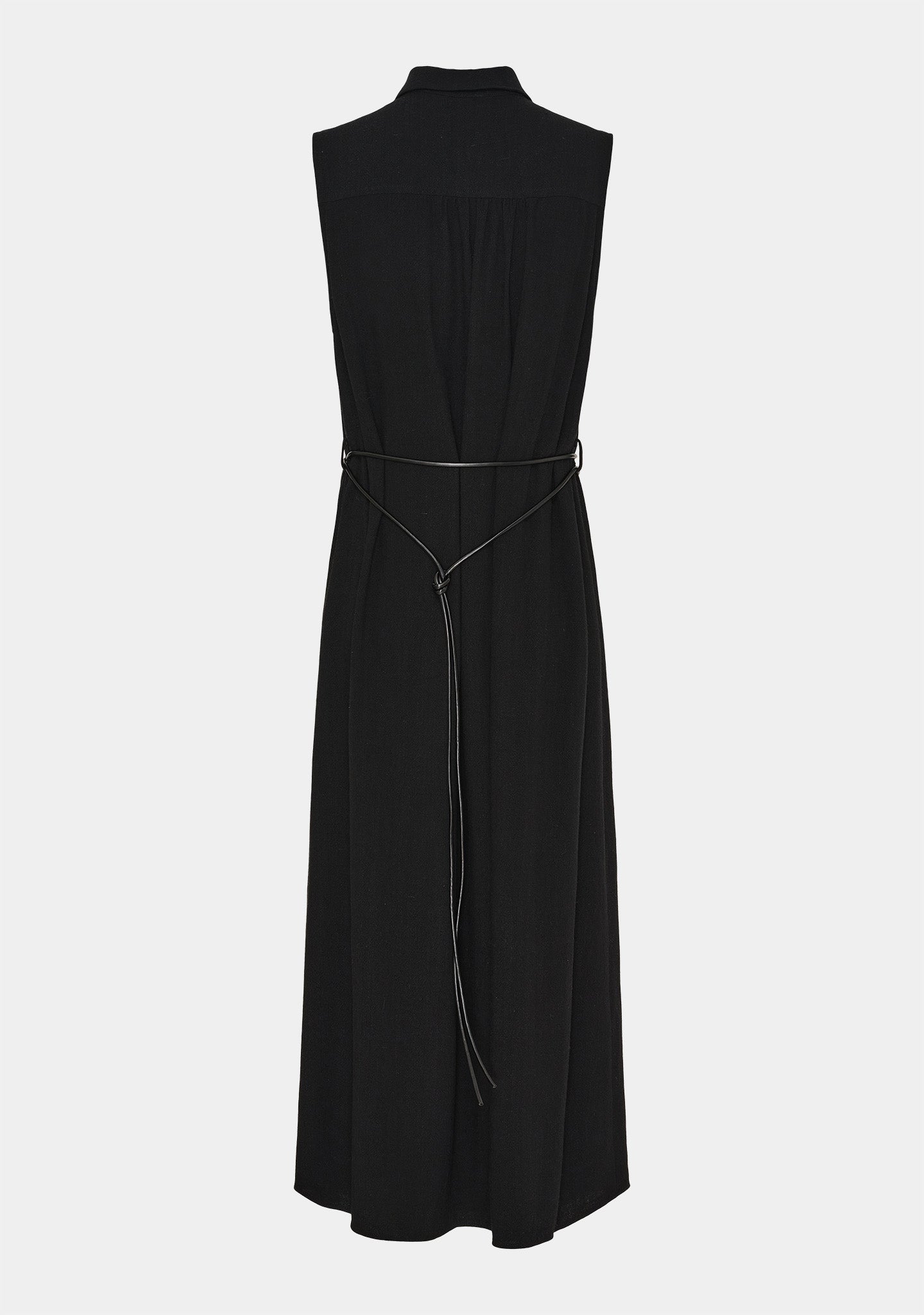 Den er ermeløs med en klassisk krage og knappelukking foran, som gir litt struktur til det myke fallet. Bruk den løst for et avslappet utseende, eller knyt beltet i midjen når du vil skape mer form. Det smale beltet med den delikate spennedetaljen tilfører den ekstra touchen - uten å overdrive.