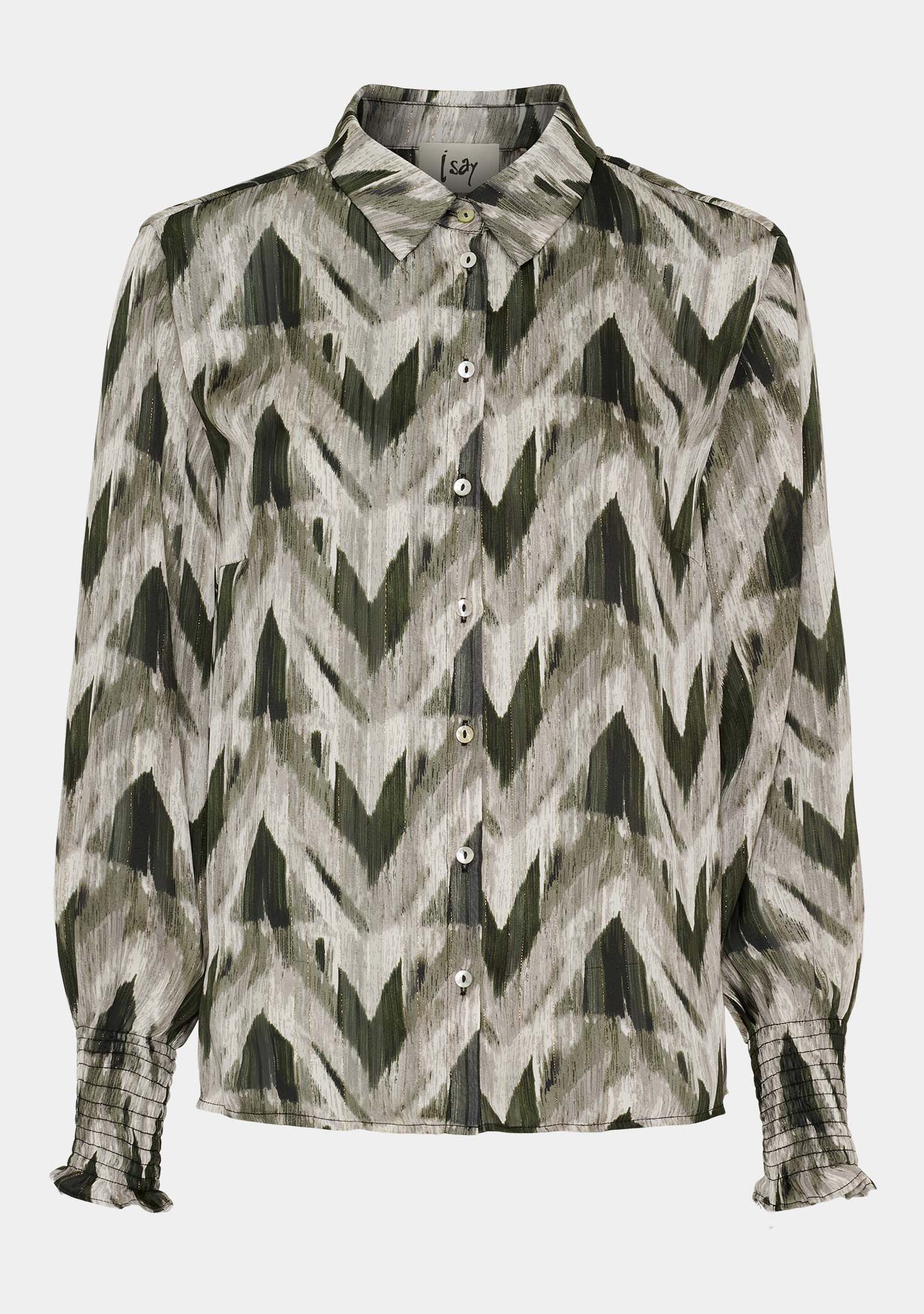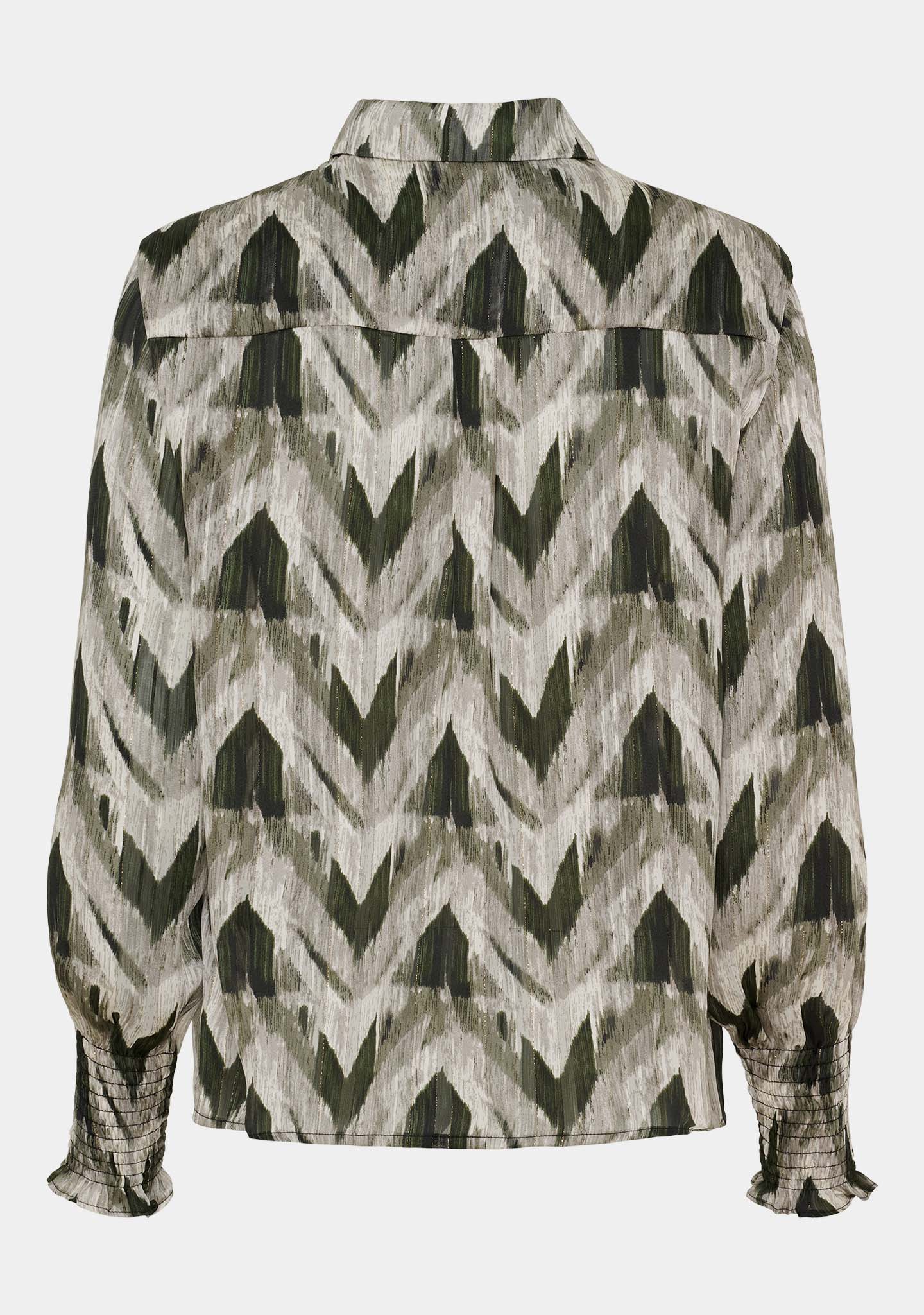 Vår elegante Vibse-skjorte er allsidig og kan styles på mange måter. Denne skjorten er gjennomsiktig i materialet og har en herlig løs og romslig passform. Den har en klassisk knappelukking med knapper hele veien ned og en spiss krage. Vibse-skjorten har et flatterende mønster og de fineste smock-detaljer ved ermeåpningen, som bidrar til å skape et feminint utseende. Den kan med fordel styles med et par bukser eller en stilig skjørt. Og gjerne et par klassiske loafers for en fullendt elegant look.