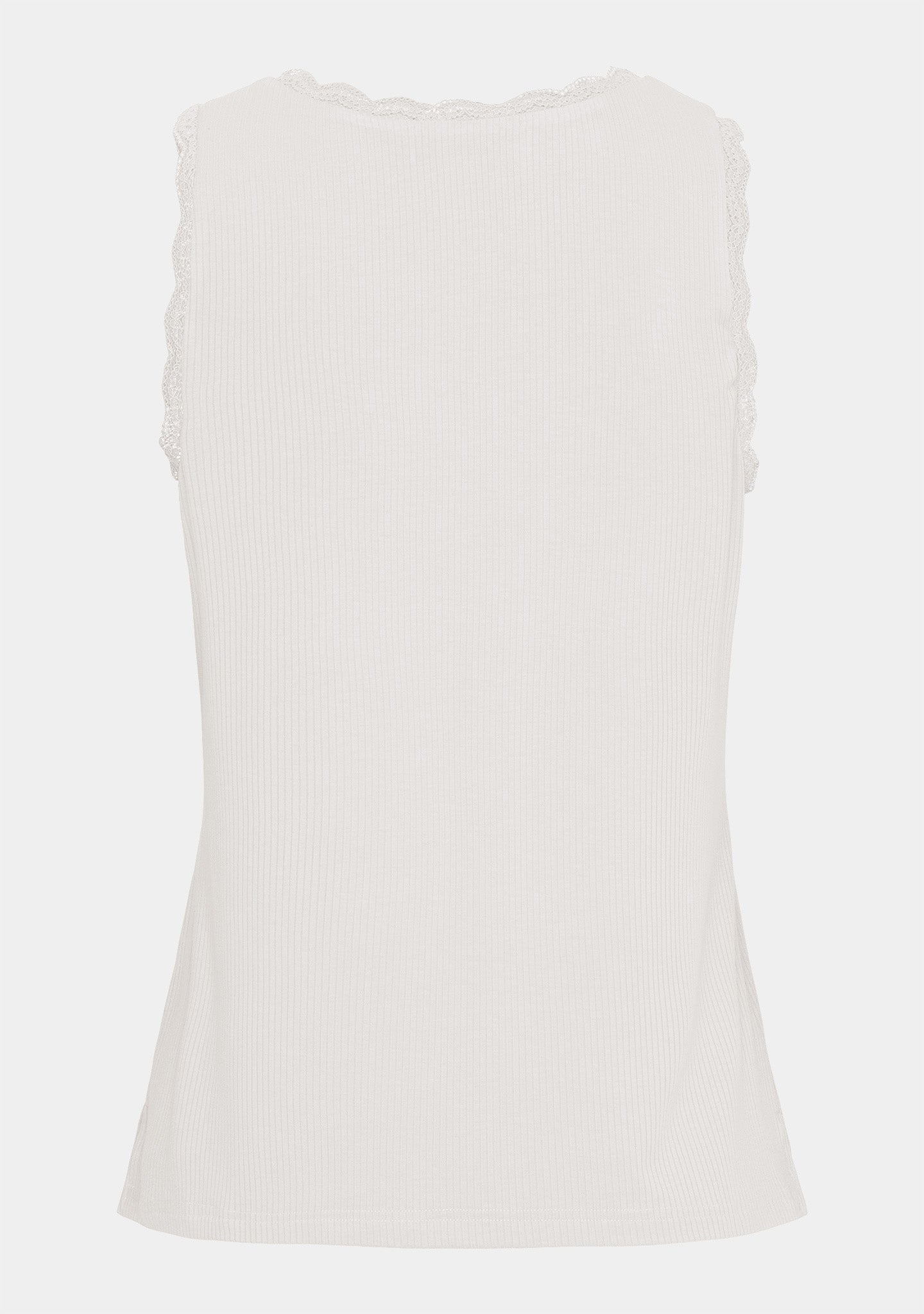 Dee O-Neck Top er en enkel og feminin topp som kombinerer komfort med delikate detaljer. Den myke, ribbestrikkede kvaliteten i en viskoseblanding gir en behagelig passform med lett strekk som følger kroppens bevegelser. De bølgede kantene ved halslinningen og ermehullene tilfører et subtilt, romantisk preg. Toppen er allsidig og kan brukes alene på varme dager eller som lag-på-lag under skjorter, cardigans og jakker.