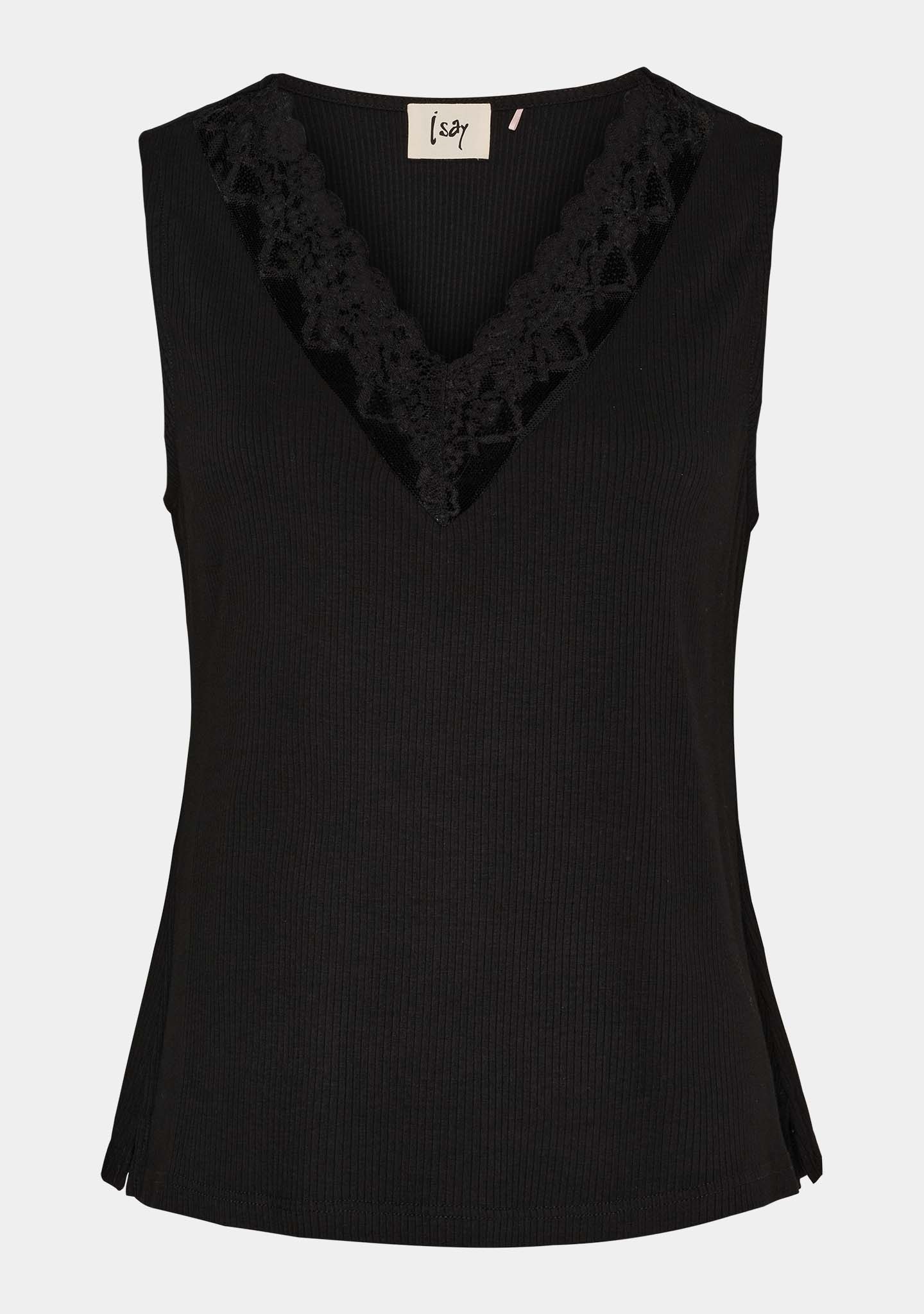 Dee V-Neck Top kombinerer feminin eleganse med komfort. Den har en vakker V-hals med blondeinnsats som gir et romantisk preg, mens det ribbestrikkede materialet med stretch sikrer en tettsittende passform som fremhever figuren. Den myke viskoseblandingen gjør toppen behagelig å ha på hele dagen, og designet gjør det enkelt å style både til hverdags og festlige anledninger.