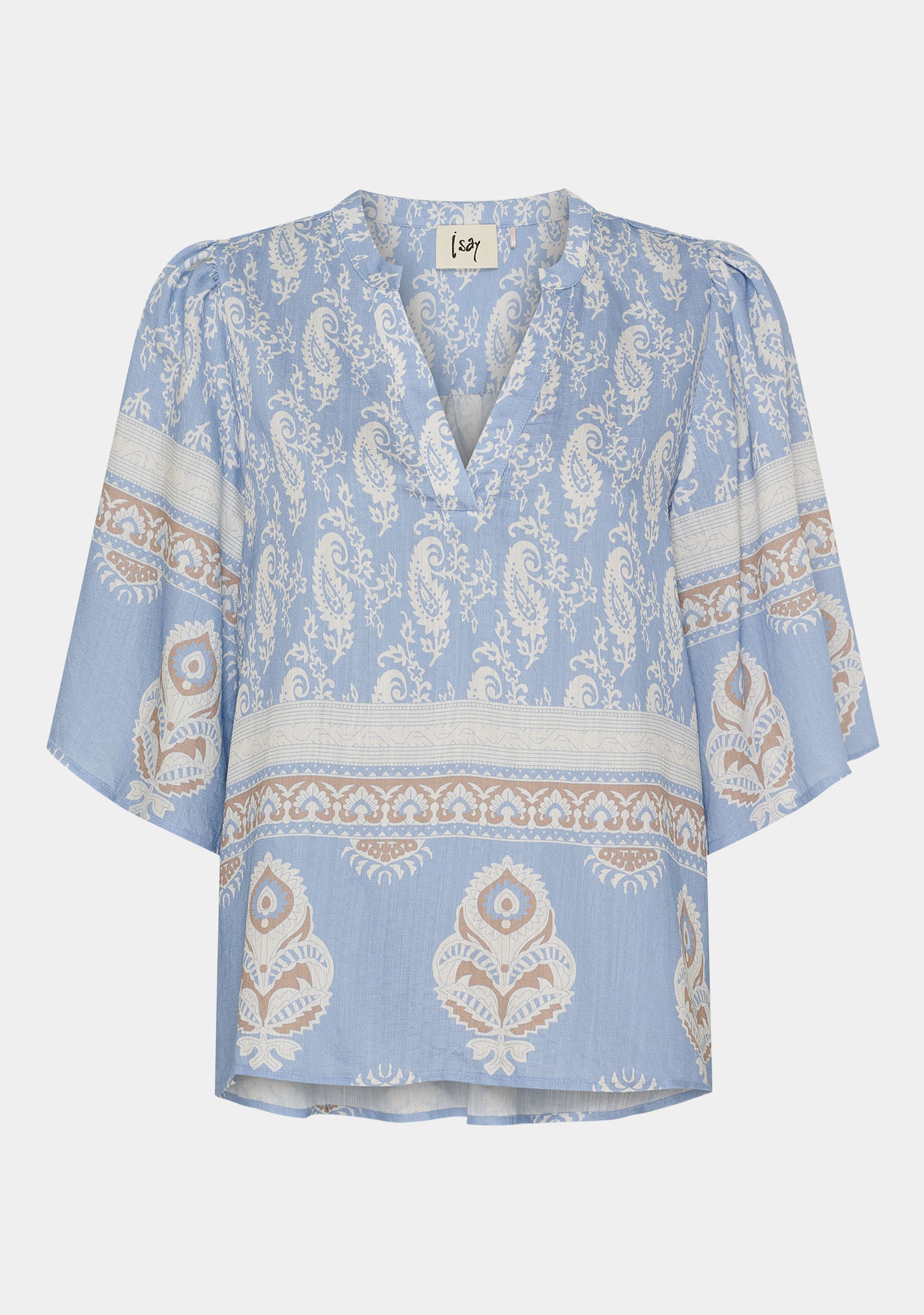 Ane s/s Blouse - Light Blue Border Paisley