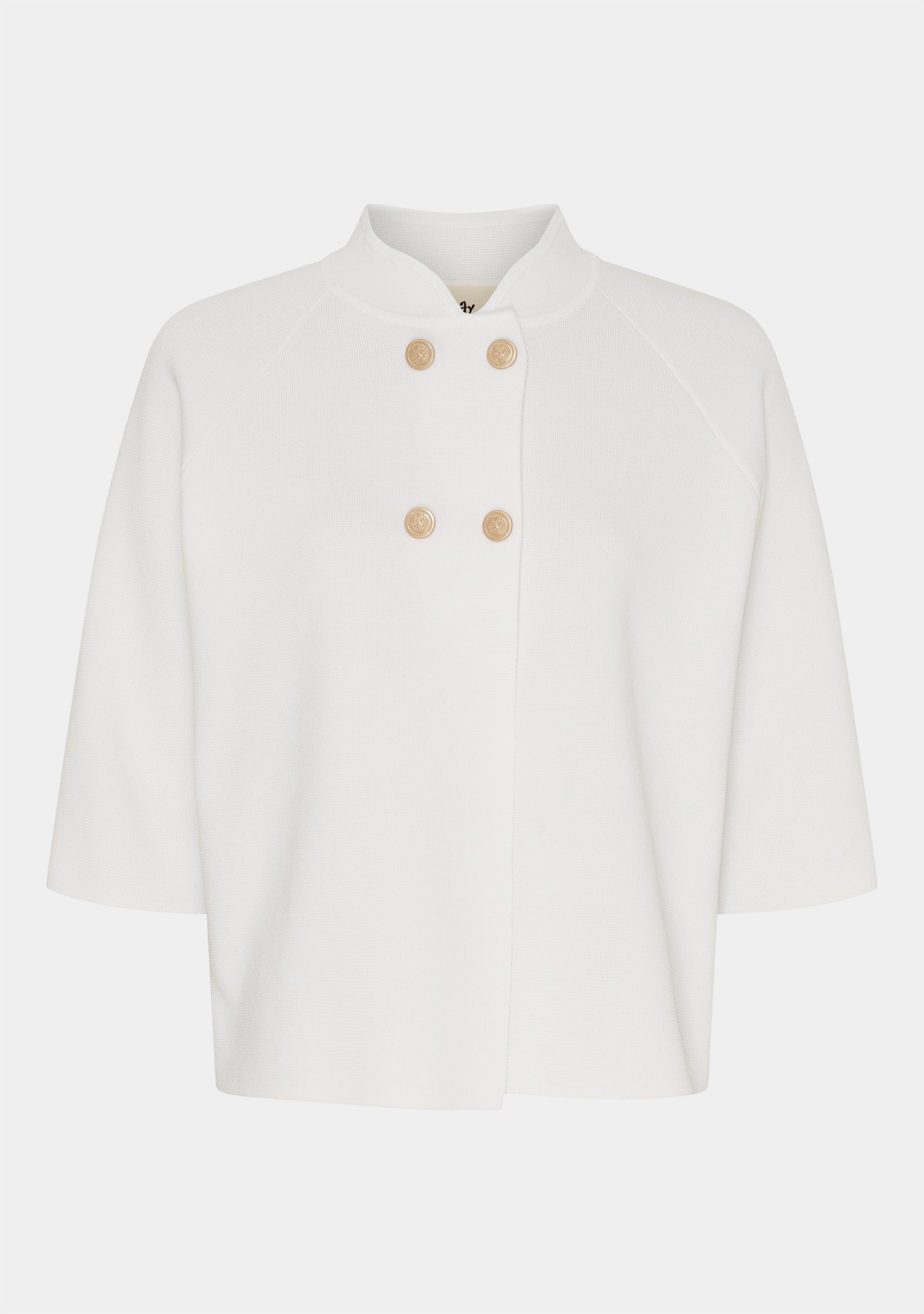 Ståkraven og de foran knappene gir et gjennomarbeidet uttrykk, mens de små sideskillene legger til bevegelse og gjør det enkelt å style over en skjorte, bluse eller lett strikk.