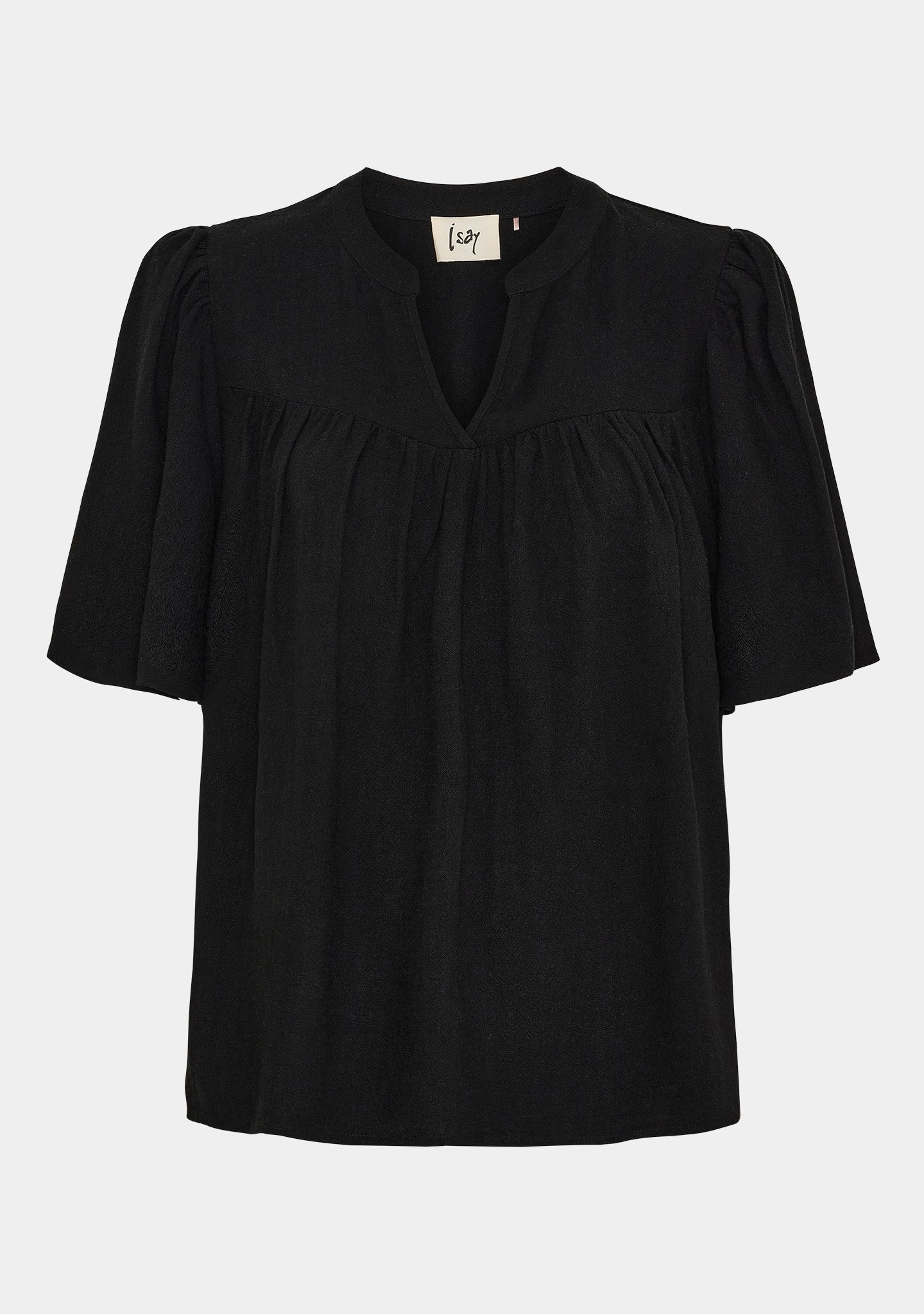 • Bluse i linindblanding med rynkedetalj over brystet