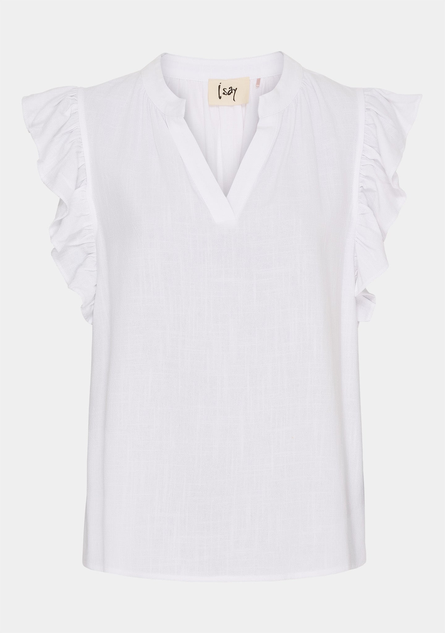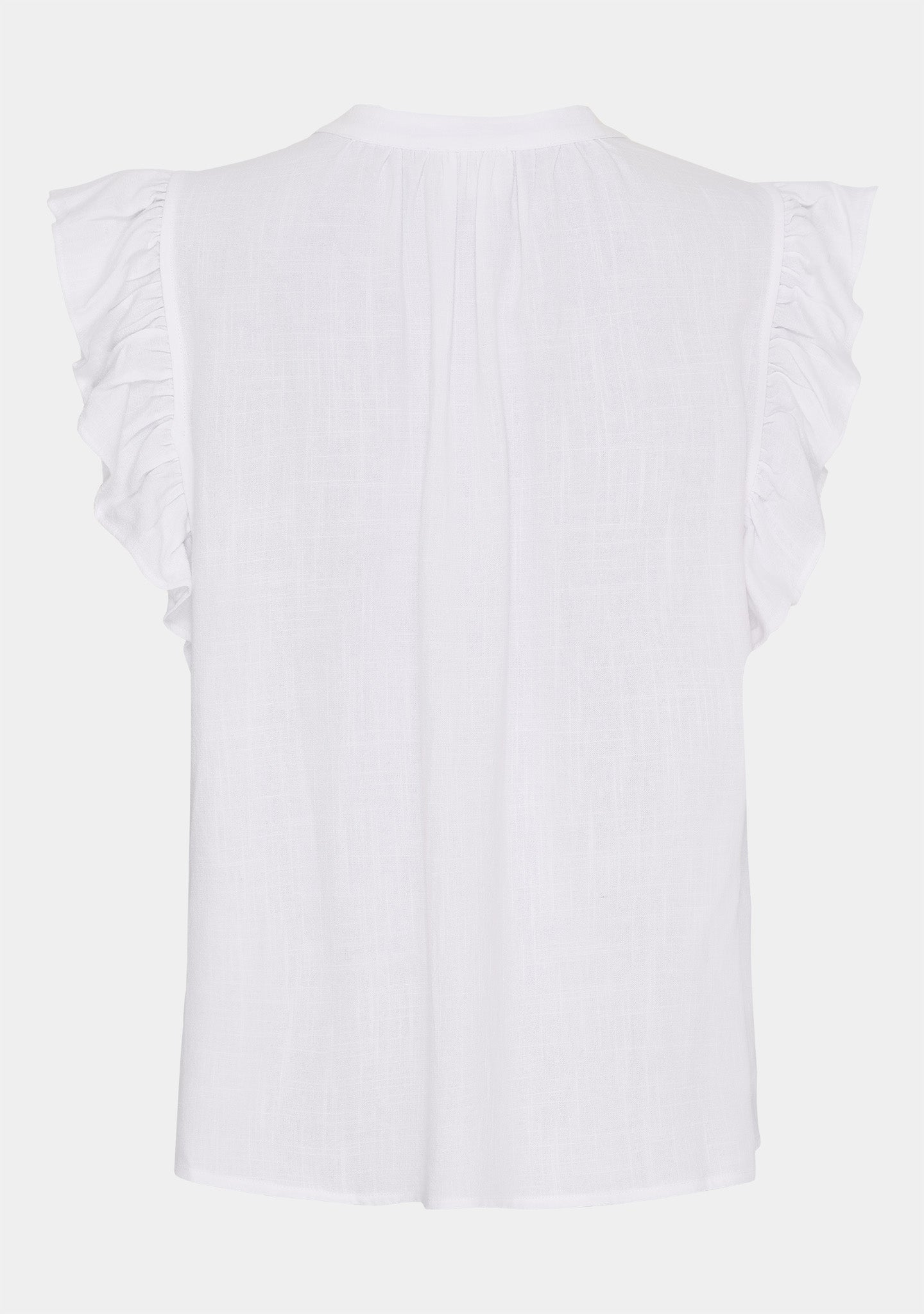 Pearl Flounce Top er inkarnasjonen av sommeren. Den typen topp du tar på en varm morgen - og med en gang føler deg lett, velkledd og helt komfortabel.
