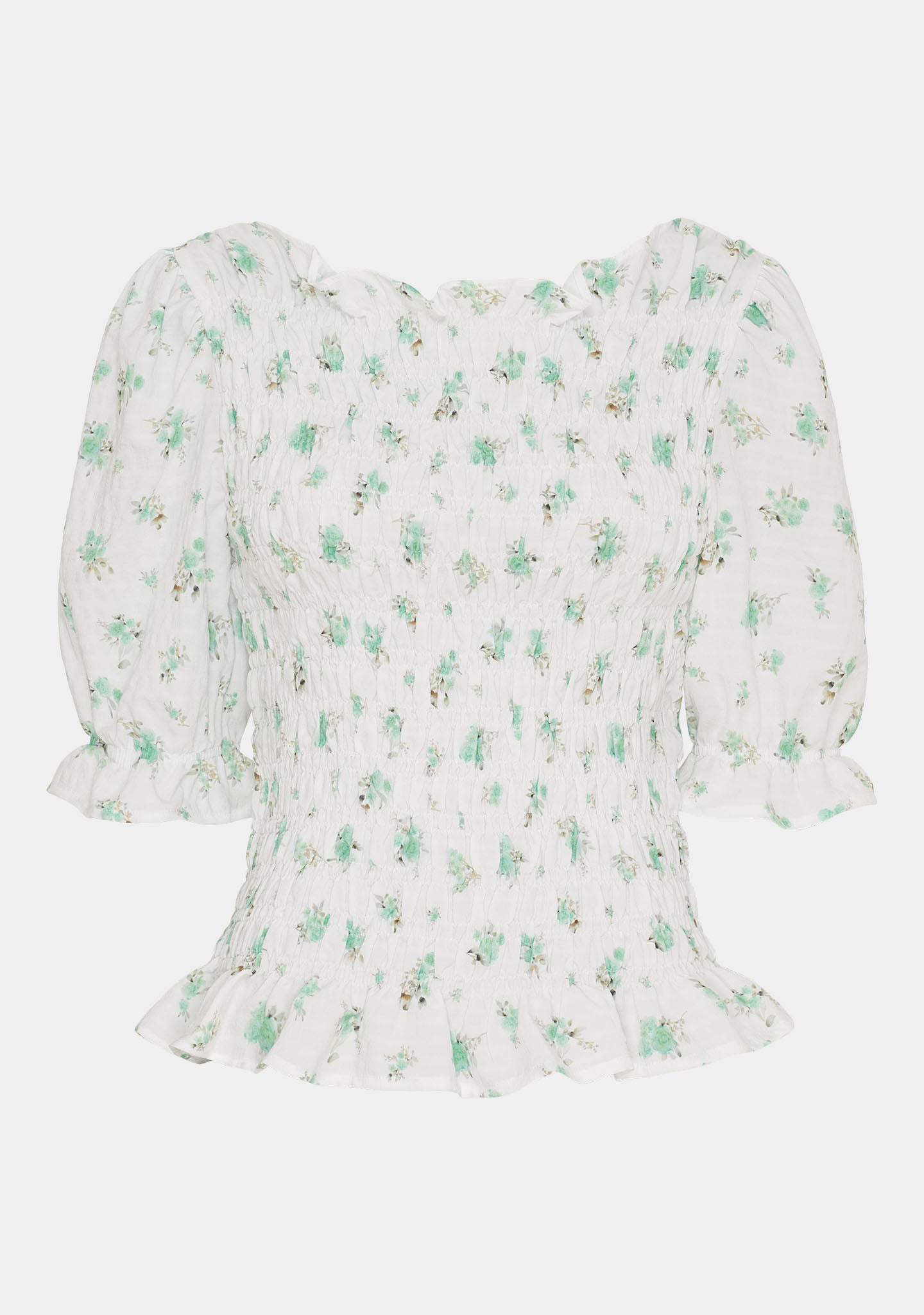 Pernille Smock Blouse - Green Flower Dream